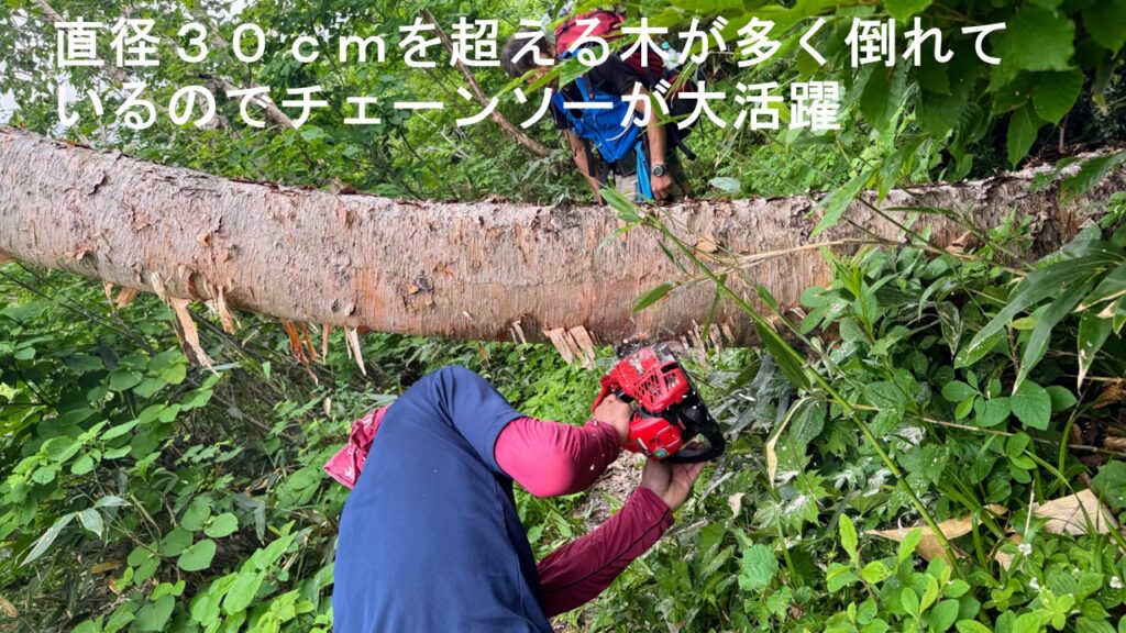 パトロールの総延長は50キロ以上と非常に長いルートとなります。パトロールでは倒木や標高の高い場所では雪渓が残っており安全確保のためにも整備がかかせません。